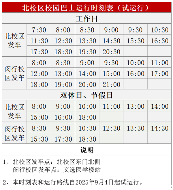 备注:班车服务将根据学校要求调整,请大家及时关注,谢谢!